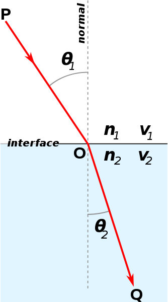 斯涅爾定律是因荷蘭物理學家威理博·斯涅爾而命名,在光學里,光線跟蹤科技應用斯涅爾定律來計算入射角與折射角。在實驗光學與寶石學里,這定律被應用來計算物質的折射率。對于具有負折射率的負折射率超材料(metamaterial),這定律也成立,允許光波因負折射角而朝后折射。