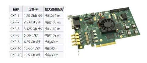 CoaXPress是專業和工業成像應用(例如機器視覺、醫學成像、生命科學、廣播和國防)的全球最快標準。它是一種不對稱的點對點串行通信標準,可通過單根或多根同軸電纜傳輸視頻和靜止圖像,CXP 1.1相機已經面世了十年,它具有用于視頻、圖像和數據的每條電纜高達6.25 Gbps的高速下行鏈路特點,其使用的標準連接器為75?BNC和DIN1.0/2.3;目前CXP1.1引入的單個通道最大傳輸速度為6.25Gbps,對于CXP-10,CXP 2.0將其提高到10 Gbps,對于CXP-12,CXP2.0將其提高到12.5 Gbps。